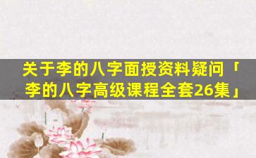 课程名 🌹 称: 李的八字高级 🌷 课程全套