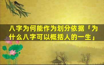八字能 🌾 够作 🐎 为划分依 🦋 据是因为: