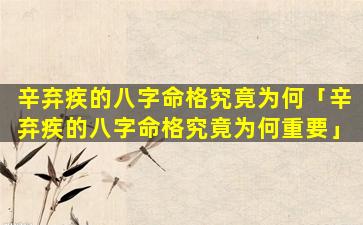 辛 🐛 弃疾的八字命格被认为重要,原因如下: