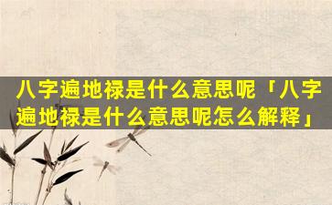 八字遍地禄是一种非 🌼 常吉利的情况 🌿 ,预示命主福禄双全、官、运亨通生活富足。
