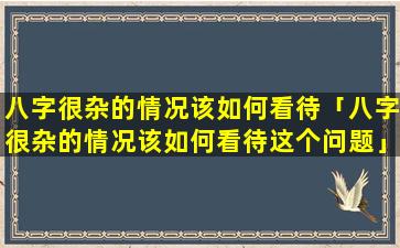八字 🐒 很杂的 🐠 情况该如 🪴 何看待