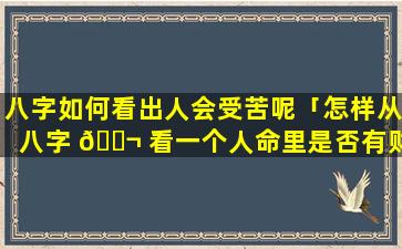 “受 🐶 苦人八字”的具体特征说法不一,但普遍认为 🐦 具有 🍁 以下特点: