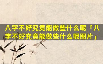 ![八字 🌳 不好究竟 🦅 能 🕸 做些什么]()