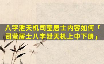 司萤居 🐞 士八字 🐅 泄天机中册