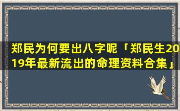 抱歉,我没有郑民生2019年流 🐧 出的命理资料合集。