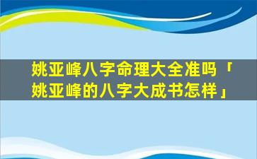 综合来看 🐛 ,姚亚峰的八 🐳 字 🐟 水平尚有争议。