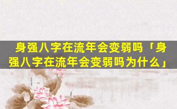 在八字命理 🐅 学中,身 🐟 强八字是否 🕷 在流年会变弱取决于以下因素: