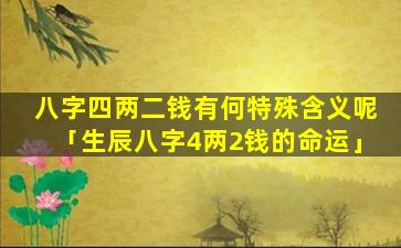 总体来说,生辰八字“4两2钱”的人性格外向、聪 🐶 明有才华。事,业。运势较好但需 🐕 要注意健康问题和 🐟 感情波折