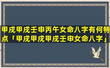 甲戌甲戌壬申 💐 丙午女命八字特点如下: