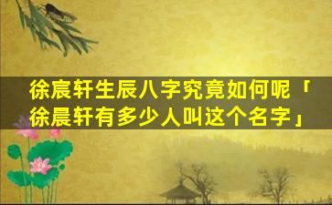 根据中国 🐝 姓名统计数据,截至2021年,约有234万人叫“徐晨轩”这个名字。