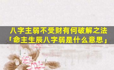 八字主弱不受财的破 🐈 解之 🐳 法: