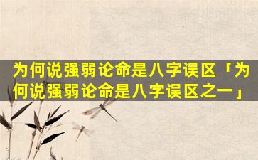 强弱论命 🌴 是八字误区的说 🌺 法主要基于以下原 🍁 因:
