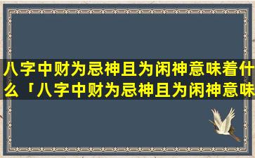 八字中 🪴 财为忌 🌾 神且为闲神 💐