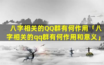 八字相关 QQ 群的作用 🐠 :