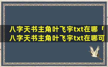 其他渠道:百度网盘:搜索“八字天书主角叶 🐼 飞宇txt”下载。