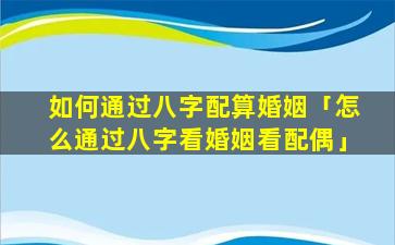 如 🦟 何通 🌺 过八字看婚姻