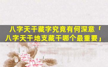 藏字的意义八字天干藏字的意义主要表 🌿 现在以下几个方面: