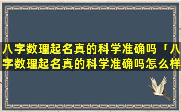 八字数理起名 🐋 缺乏 🦅 科学依据,没有经过严谨的实验验证。