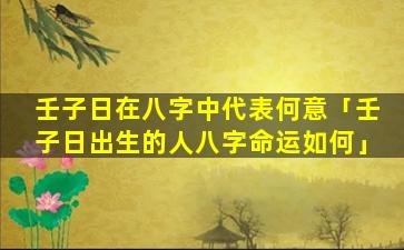 壬子日出生的人,性格温和、善、解人,意,心,地,善,良,有,同,情,心容易被感动为人处世圆滑待人 🐕 接物彬彬 🌻 有礼懂得尊重他人有耐心有韧性做事有始有终不轻易放弃。