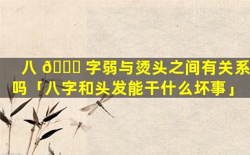 没有科学证据表明八字弱与烫头 🐳 之间有任何关联八字。是一种传统的中医学理论 🌾 ,用,于,预。测一个人的命运和性格而烫头是一种美容技术对一个人的命运或性格没有影响