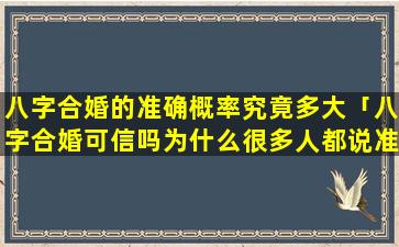 为什么很多人说八字 🦋 合 ☘ 婚 🦊 准