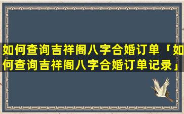 查询吉祥 🐯 阁八 🐞 字合婚订单 🦁 记录的步骤: