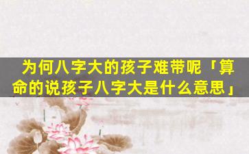 “八字大”在命理 🌼 学中指出生时辰干支的五行能量强旺。坊“间”流传着八字大的 🐝 孩子难带的说法,但,从命理学的。角度来看这种说法并不完全准确