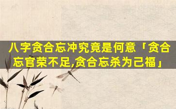贪合 🐈 忘冲是八字命理学中一种需要谨 ☘ 慎对待的格局,虽,然可以带来人际和谐但也会造成性格上的不足可以。通,过,适,当的。化解方法弥 🐺 补缺点发挥优势获得更为平衡的人生
