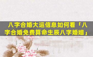 八字合 🌾 婚免费 🌼 算 🌸 命