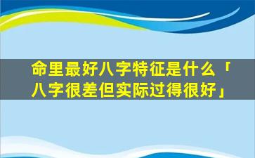 “八字很差”但 🦅 “不”尽然过得不好