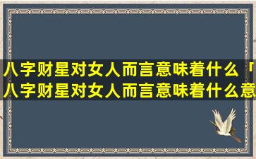 八字财 🦊 星对女 🐠 性的意义 🐒