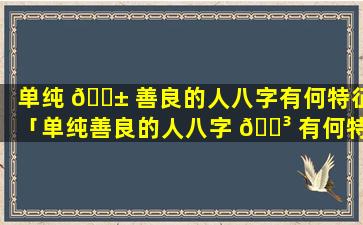 单纯善 🐛 良的 🐠 八字特点 🌵 图片