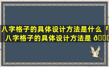 测八 🐡 字格局的具体 🐒 步 🐺 骤: