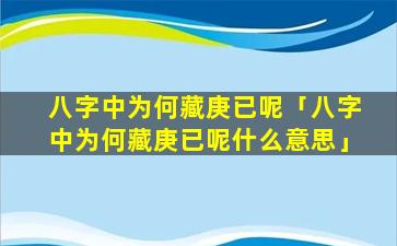 “八字 🐶 中为何藏庚已”这句话的意思是,在八字的,十二地支中巳支和亥支 🐡 里面 🦉 藏有庚金和己土。具体来说: