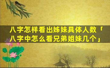 八字判断兄弟 🌳 姐妹的方法 🐱