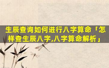 如何利用生辰 🦟 查 💐 询进行八字 🐶 算命