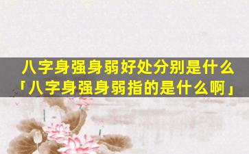 需 🦅 要注意的是,身 🐟 ,强身弱的优缺点 🌼 只是相对而言具体情况还需结合命局中的其他因素综合判断。