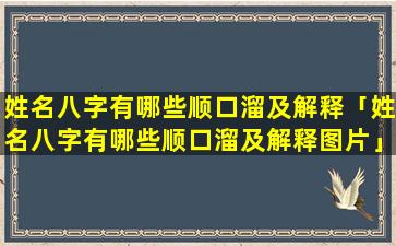 姓 🐬 名八字 🐅 顺口 🐴 溜