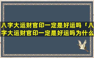 八字大运财官印不一定一定是好运,还要看具体 🦟 情况: