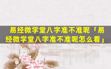 易经微学堂八字准不准的 🦟 知乎评价 🦅