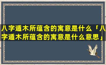 八字 🐈 遁木所蕴含的 💐 寓意: