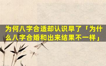 八字合适却认识早了,说明缘分时机不符或其他因素导致未能把握住机会不。过,缘,分,天。注定若命中注定有缘 🦊 也会在适当的时间相逢
