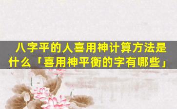 八字平衡 🐦 法看 🐺 喜用神 🌷
