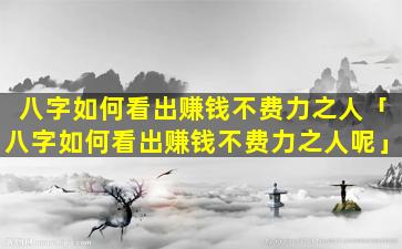 八字中能够 🌸 看出赚钱不费力之人的特点: