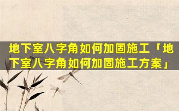 地 🐅 下室八字 🦟 角加固施工流程 🐟