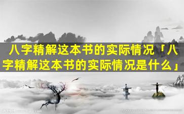 实际情况:《八字精解》是一 🌴 本广受好评 🕸 的八字命理学著 🌷 作,其实际情况如下: