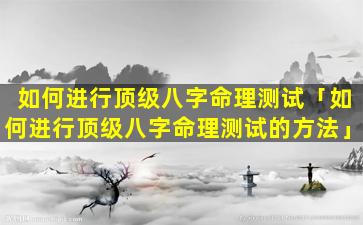 如 🐎 何进行 🌾 顶 🐠 级八字命理测试
