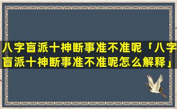 盲派十神断事 🐬 的 🌾 准确 💐 性颇受争议。