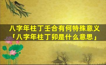 八字年 🌿 柱丁壬合 🐠 的特殊意义: