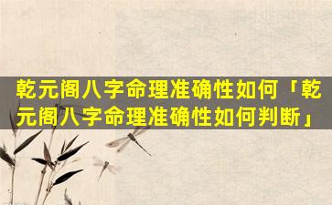 乾元阁八字 🦈 命 🦈 理准确 🐧 性评估